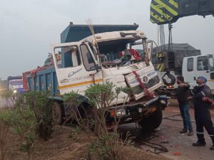 নিজস্ব সংবাদদাতা : ঝাড়গ্রামের ৬০ নম্বর জাতীয় সড়কের চন্দ্রির কাছে বৈরা এলাকায় একটি ভয়াবহ পথ দুর্ঘটনায় প্রাণ হারালেন এক লরি চালক। শুক্রবার সকালে জাতীয় সড়কের ধারে দাঁড়িয়ে থাকা একটি ডাম্পারের পিছনে মুম্বই থেকে কলকাতাগামী একটি দ্রুতগতির ১২ চাকার লরি সজোরে ধাক্কা মারলে এই দুর্ঘটনাটি ঘটে। সংঘর্ষের শব্দ এতটাই প্রবল ছিল যে বিকট আওয়াজে কেঁপে ওঠে গোটা এলাকা। স্থানীয় বাসিন্দারা জানিয়েছেন, লরিটির গতিবেগ অত্যন্ত বেশি ছিল এবং ধাক্কা মারার পর সেটির সামনের অংশ ডাম্পারের নিচে ঢুকে গিয়ে পুরোপুরি দুমড়ে-মুচড়ে যায়। কেবিনের ভেতর পিষ্ট হয়ে গুরুতর আহত হন চালক।