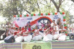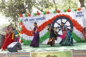 নিজস্ব সংবাদদাতা : পশ্চিম মেদিনীপুর জেলার গোয়ালতোড় এলাকায় বিশিষ্ট নৃত্যশিল্পী তথা অধ্যাপিকা পায়েল পাত্রের উদ্যোগে প্রতি বছরের মতো এই বছরও অত্যন্ত জাঁকজমকপূর্ণভাবে বসন্ত উৎসব পালিত হয়েছে। শান্তিনিকেতনের ঐতিহ্যবাহী বসন্ত উৎসবের ছোঁয়া গোয়ালতোড়ের মাটিতে পৌঁছে দিতেই এই বিশেষ অনুষ্ঠানের আয়োজন করা হয়। সৃষ্টি ড্যান্স একাডেমির কয়েকশ ছাত্রছাত্রী ও স্থানীয় নৃত্যশিল্পীদের অংশগ্রহণে পুরো এলাকা এক মায়াবী সাংস্কৃতিক আবহে ভরে ওঠে। উৎসবের মূল ভাবনা ও রূপায়ণে ছিলেন একাডেমির কর্ণধার অধ্যাপিকা পায়েল পাত্র নিজে। অনুষ্ঠানের দিন সকালে প্রায় পাঁচশ ছাত্রছাত্রী, বিশিষ্ট ব্যক্তিবর্গ এবং স্থানীয় বাসিন্দাদের নিয়ে একটি সুসজ্জিত বর্ণাঢ্য শোভাযাত্রা বের করা হয় যা সমগ্র গোয়ালতোড় শহর প্রদক্ষিণ করে। পদযাত্রা শেষে পায়েল পাত্র হুমগড় মোড়ে অবস্থিত বীর বিপ্লবী সিধু-কানুর মূর্তি এবং বিদ্যাসাগরের মূর্তিতে মাল্যদান করে শ্রদ্ধা নিবেদন করেন।