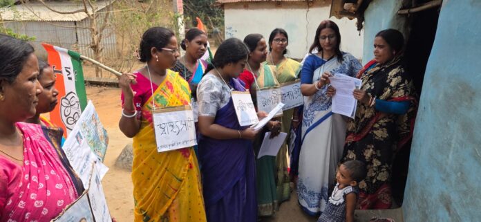 নিজস্ব সংবাদদাতা : আগামী ২০২৬ সালের পশ্চিমবঙ্গ বিধানসভা নির্বাচনকে সামনে রেখে ঝাড়গ্রাম জেলার জামবনি ব্লকে নির্বাচনী দামামা বাজিয়ে দিল মহিলা তৃণমূল কংগ্রেস। সোমবার জামবনি ব্লকের ধড়সা ও পড়িহাটি অঞ্চলের বিভিন্ন গ্রামে ধুমধাম করে পালিত হলো ‘লক্ষ ঘরে লক্ষীরা’ কর্মসূচি। এই প্রচার অভিযানের মূল লক্ষ্য হলো বিগত ১৫ বছরে মুখ্যমন্ত্রী মমতা বন্দ্যোপাধ্যায়ের নেতৃত্বে রাজ্যের যে অভূতপূর্ব উন্নয়ন হয়েছে, তার সুফল প্রতিটি পরিবারের দোরগোড়ায় পৌঁছে দেওয়া এবং ভোটারদের সঙ্গে সরাসরি জনসংযোগ স্থাপন করা।